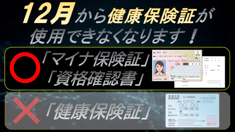◆健康保険証廃止のお知らせ◆ 12月より健康保険証がご利用いただけなくなります。保険診療を受ける際は、マイナ保険証または資格確認書のご提示が必要となります。お手続きがスムーズに進むよう、事前にご準備をお願いいたします。ご不明点はお気軽にご相談ください。